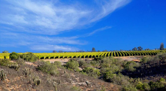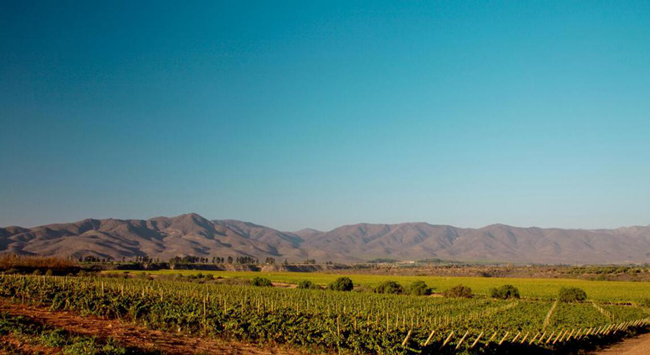 明朗如鏡的天空,映襯著連綿起伏的山丘,偶爾可見仙人掌、山楂樹和其它一些低矮的灌木叢,而在山谷之地,卻分布著成片的葡萄園,綠色的葡萄葉、黃色的土地與藍色的天空交相輝映,這就是阿塔卡馬沙漠(Atacama Desert)南部的風(fēng)光,著名的利馬里谷(Limari Valley)產(chǎn)區(qū)便坐落于此。