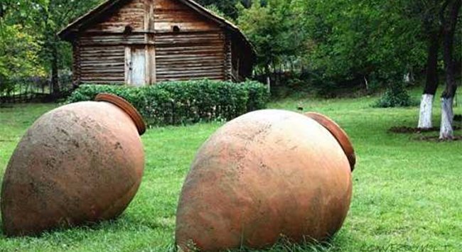 卡赫基傳統葡萄酒:卡赫基葡萄酒釀造歷史源遠流長,堪稱格魯吉亞乃至全世界較古老的葡萄酒。卡赫基地區傳統釀酒工藝可謂獨占鰲頭;首先在壓榨槽內將葡萄壓榨成汁并保持葡萄籽完整,在將葡萄汁導入純凈的Qvervri(粘土燒制的陶罐)中,將榨汁后的葡萄皮渣(在格魯吉亞語中稱為恰恰)和梗一并倒入陶罐中,一同放置十天,期間每天攪拌四次。攪拌較長時間(通常至少14天)均勻的發酵具有重要意義。發酵完成后葡萄渣開始沉降,此時將陶罐封口但不密封以防止抑制蘋果酸-乳酸發酵。之后將陶罐密封靜置至次年三月份。