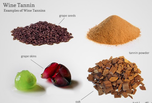 葡萄酒中的單寧來自葡萄皮、葡萄籽、葡萄梗以及發酵陳釀過程中的橡木桶。釀造過程中,皮渣浸漬時間越長,單寧越高,橡木桶越新,陳釀時間越長,單寧也越高。單寧在陳年的過程中,口感會逐漸由生澀變得順滑。