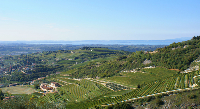 瓦坡里切拉位于維羅納(Verona)北部,地處阿爾卑斯山(Alps)山麓,西面臨近意大利最大的湖泊加爾達(dá)湖(Lake Garda),地形以平原和山麓為主。由于受到山脈的阻擋,再加上湖泊的調(diào)節(jié)作用,產(chǎn)區(qū)內(nèi)的氣候整體比較溫和,可以為葡萄提供理想的自然生長環(huán)境。相傳在拉丁語中,產(chǎn)區(qū)名字“Valpolicella”意為“Valley of Many Cellars(匯聚眾多酒窖的山谷)”,這也從側(cè)面印證了該地與葡萄酒的淵源。