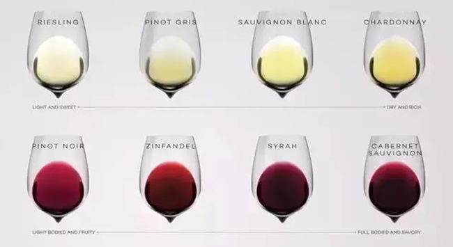 白葡萄酒:從酒體輕盈且甜的到酒體飽滿且干型的,我們分為四個類型;