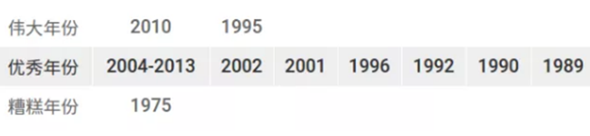 博訥丘產(chǎn)區(qū)(Côte de Beaune)年份排行