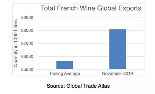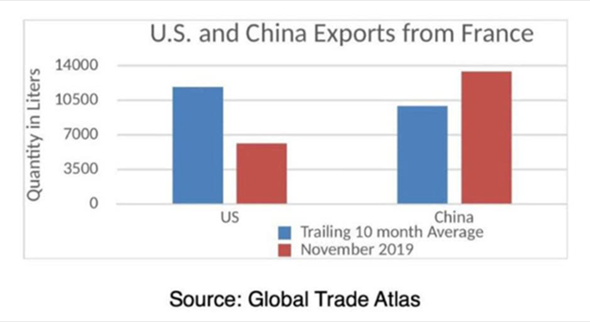 目前的關(guān)稅在迫使歐盟執(zhí)行DSB(即WTO爭端解決實(shí)體)建議方面是無效的。在實(shí)施關(guān)稅的頭一個(gè)月,法國葡萄酒貿(mào)易的全球出口卻大幅增長,恰好說明了這一點(diǎn)。法國葡萄酒的世界買家中,就有中國的身影。