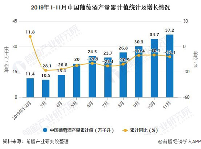 2019年前11月中國葡萄酒產量超37萬千升