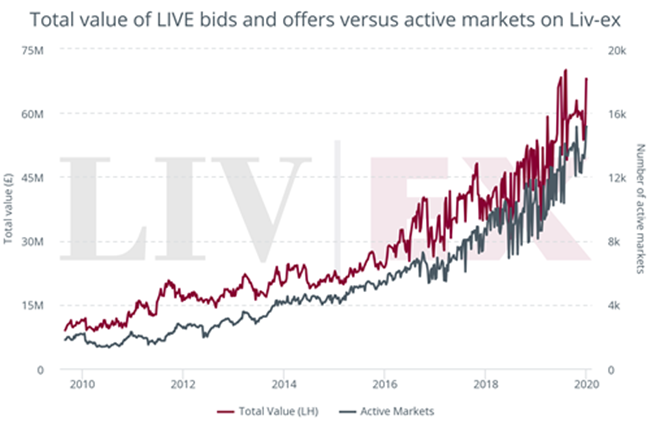 自動化最明顯的影響是使Liv-ex市場的葡萄酒大增。 如我們在最近的有關博客中指出,在2019年7月,出價和報價總值創(chuàng)7000萬英鎊新高。