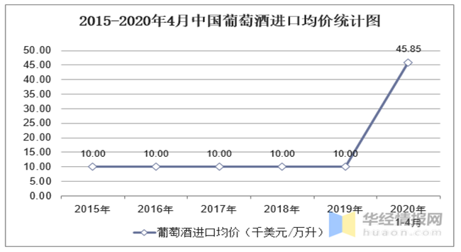 2015-2020年4月中國葡萄酒進(jìn)口均價統(tǒng)計圖