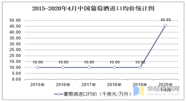 2015-2020年4月中國葡萄酒進(jìn)口均價統(tǒng)計(jì)圖