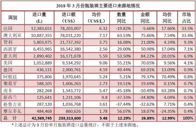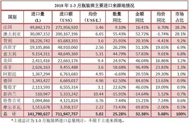 • 2018年1-3月份葡萄酒進口統計分析