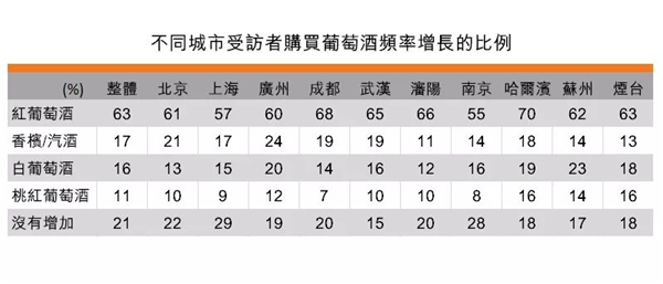 調查顯示,內地消費者近年購買葡萄酒的頻率也有所增長。在過去2-3年內,只有21%的受訪者表示購買葡萄酒的頻率沒有增加。換言之,79%受訪者購買葡萄酒的頻率有所上升。