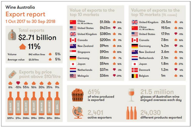 “這些數字,也是澳大利亞2401家出口商兢兢業業工作的成果,他們花很多時間在市場上建立品牌聲譽、拓展分銷網絡、提升澳大利亞葡萄酒整體在消費者心目中的知名度。”