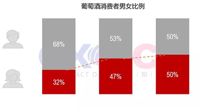 近年來,女性在葡萄酒消費者中占比逐年擴大。有相關數據統計,女性消費人數正以每年22%的速度增長。跟據2017年香港貿發局對內地葡萄酒消費者做的抽樣調查顯示,男性消費者與女性消費者占比相當,各占50%。