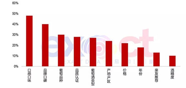 數據顯示,消費更愿意跟隨內心,為個人喜好買單,口感口味(48%)超過品牌口碑(40%)和價格(22%)成為排名第一的影響購買因素,可見消費者在選購葡萄酒時趨于理性。