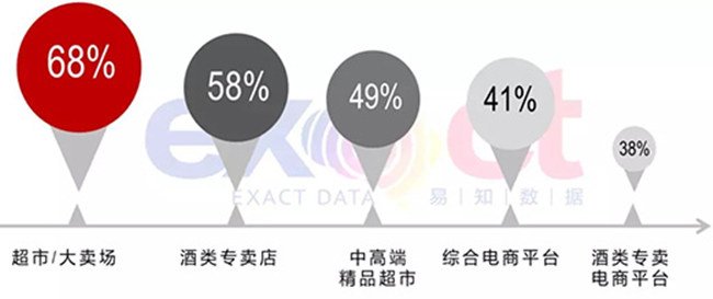 近年線上零售發展迅猛,雖然從數據來看,超市/大賣場、酒類專賣店、精品超市三種傳統零售渠道仍占大比重,但仍然有41%和38%的消費者選擇線上平臺。且隨著千禧一代年輕消費者崛起,線上消費的意愿會更強烈。
