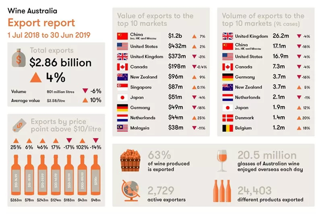 根據(jù)澳大利亞葡萄酒管理局(Wine Australia)公布的數(shù)據(jù),2019年前5個月,澳大利亞出口中國大陸的葡萄酒總價(jià)值首次超越法國,成為中國進(jìn)口葡萄酒的第一大來源國。