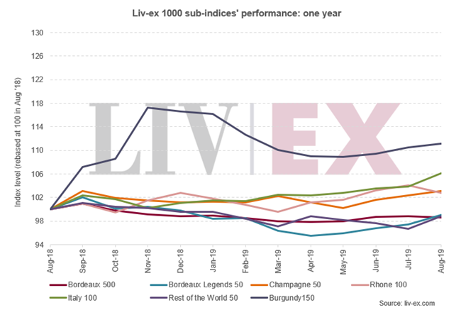 • 廣泛優質葡萄酒市場8月上升 0.5%