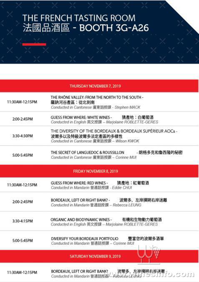 今年酒界盛事香港國際美酒展(11 月 7 至 9 日)將迎來 70 多家法國展商。佔地約 513 平方米的法國館位于香港會議展覽中心 3F-G,由法國商務投資署(Business France)及新阿基坦大區(qū)食品協(xié)會 (AANA)籌辦。在香港市場排名第一的法國葡萄酒和烈酒分別佔 60%及 40%市場份額。 French Tasting Room 品酒區(qū)繼去年成功推出后,今年將重現(xiàn)法國館。法國展商將在共 9 場主題品酒環(huán)節(jié)上陳列各款佳釀,這對于進口商、專業(yè)人士及業(yè)馀愛好者來說是一個難能可貴的大滿足機會,品嚐出產(chǎn)自法國的純釀。