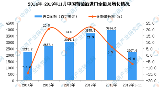 • 2019年1-11月中國葡萄酒進口量同比下降10.6%