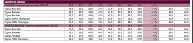 干邑白蘭地是香饃饃,非AOP級別的干邑產區葡萄園也是,這類葡萄園的價格也上漲了2.3%,達到1.42萬歐元/公頃。