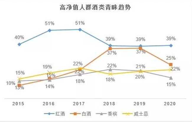 實際上,葡萄酒已越來越成為中國消費者喜愛的酒精飲料。據(jù)胡潤研究院發(fā)布《2020胡潤至尚優(yōu)品—中國千萬富豪品牌傾向報告》顯示,中國高凈值人群(平均家庭總資產4600萬元)最青睞酒類是紅酒,對葡萄酒的喜愛甚至超過白酒。