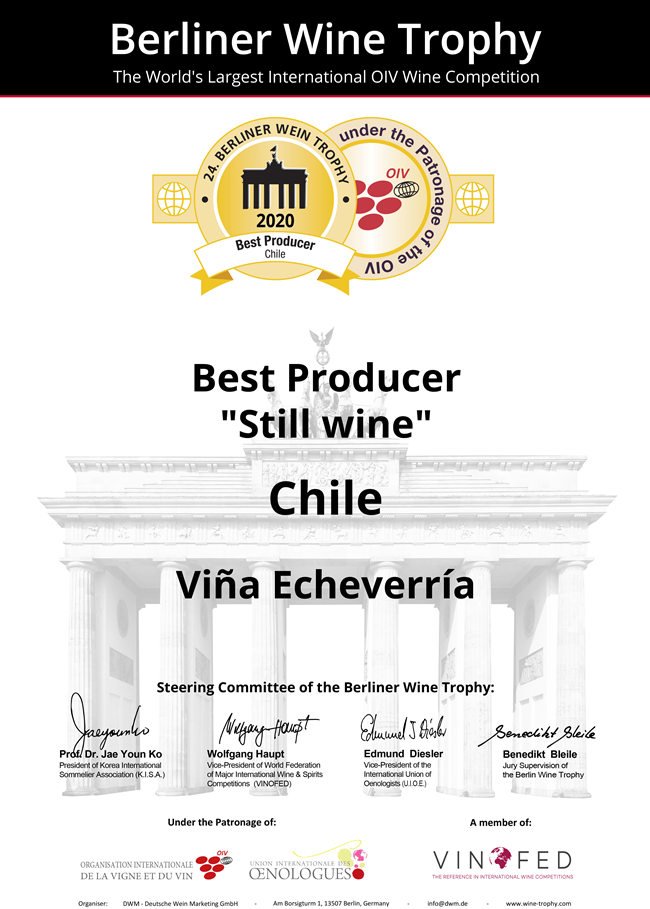 (2020柏林葡萄酒大獎(jiǎng)賽-智利最佳生產(chǎn)商 榮譽(yù)證書(shū))