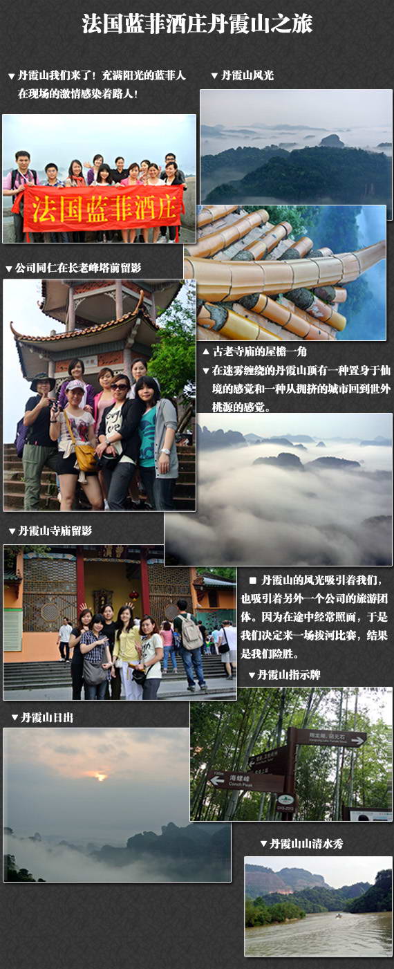 丹霞山我們來了!法國藍(lán)菲酒莊紅酒招商部、財務(wù)部、市場部、網(wǎng)絡(luò)部等諸多藍(lán)菲人在現(xiàn)場的激情感染著路人!