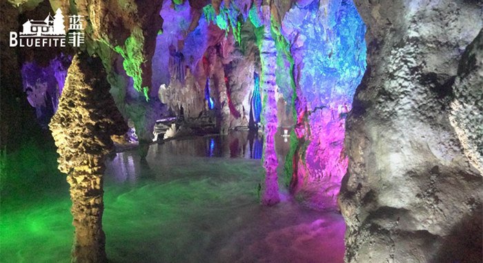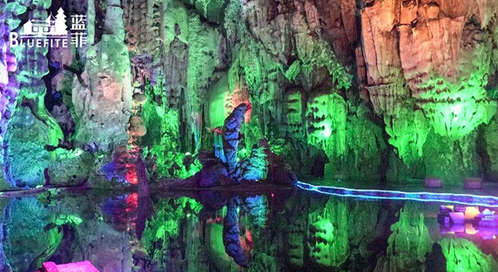 拓展之旅的第一站,就是跟隨導(dǎo)游參觀當(dāng)?shù)匾云湫邸⑵妗讯Q(chēng)的風(fēng)景名勝——寶晶宮溶洞。溶洞共分四層,共有72洞,洞洞相通;藍(lán)菲團(tuán)隊(duì)結(jié)伴而行,共同觀賞大自然的鬼斧神工!燈光映襯下的寶晶宮溶洞熠熠生輝,洞內(nèi)高大寬闊,雄偉壯觀,石筍、石柱林立,石花、石幔千姿百態(tài),石鐘乳玲瓏剔透,絢麗多姿,令藍(lán)菲伙伴們流連忘返,嘆為觀止,仿佛踏進(jìn)了一個(gè)仙境。