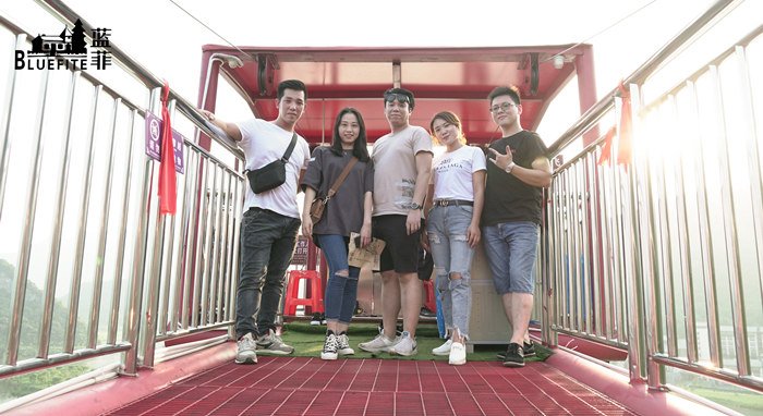 當(dāng)然啦,除了飛龍蹦極,這里還有很多極限活動(dòng)等著我們來(lái)打卡,寶晶宮跑跑卡丁車(chē)圓了我們的賽車(chē)夢(mèng),讓我們親身體驗(yàn)速度與激情,過(guò)一把賽車(chē)手的癮;天山滑道帶領(lǐng)我們?cè)谏峙c喀斯特地貌之中急速穿行,真實(shí)還原過(guò)山車(chē)叢林穿越,快速、刺激而又唯美;坐上天鵝湖滑索,飛越千畝湖面,仿佛乘風(fēng)前行,將山青水秀、碧波蕩漾的美景盡收眼底......在一輪又一輪驚險(xiǎn)刺激的游戲項(xiàng)目中,藍(lán)菲伙伴們的工作壓力都得到了盡情的釋放,在美景中返璞歸真,共同沉浸在這質(zhì)樸而浪漫的世外桃源。